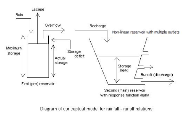 When the response factor A can be determined from the characteristics of the watershed (catchment area), the reservoir can be used as a deterministic model or analytical model, see hydrological modelling.