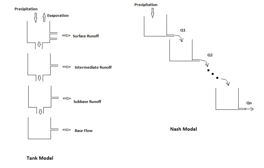 The Nash model [7] uses a series (cascade) of linear reservoirs in which each reservoir empties into the next until the runoff is obtained. For calibration, the model requires considerable research.