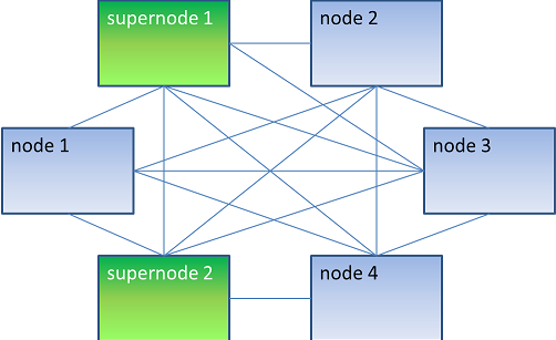 Aside the "normal" nodes, there's another kind of nodes in the cluster, called supernodes. A supernode is a lite member of Hazelcast.