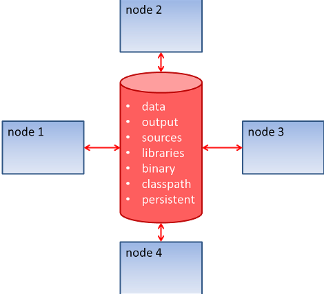 In addition to a memory data sharing, one of the most important requirements for JEM is to use a global file system (GFS[6]). The main goal is to be able to store data on a common file system so that all jobs could manage them (reading and writing). Nevertheless, a GFS is not mandatory, if you desire to have all data spread on all machines and configuring JEM to have separate Environment, by specific Domains and Affinities.