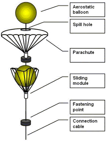 Energy can be captured from the wind by kites,[3] kytoons, tethered gliders,[4] tethered sailplanes, aerostats (spherical as well as shaped kytoons), bladed turbines, airfoils, airfoil matrices, drogues, variable drogues, spiral airfoils, Darrieus turbines, Magnus-effect VAWT blimps, multiple-rotor complexes, fabric Jalbert-parafoil kites, uni-blade turbines, flipwings, tethers, bridles, string loops, wafting blades, undulating forms, and piezoelectric materials,[5] and more.[6]