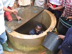 Man cleaning a well in Yaoundé, Cameroon. https://handwiki.org/wiki/index.php?curid=1454020