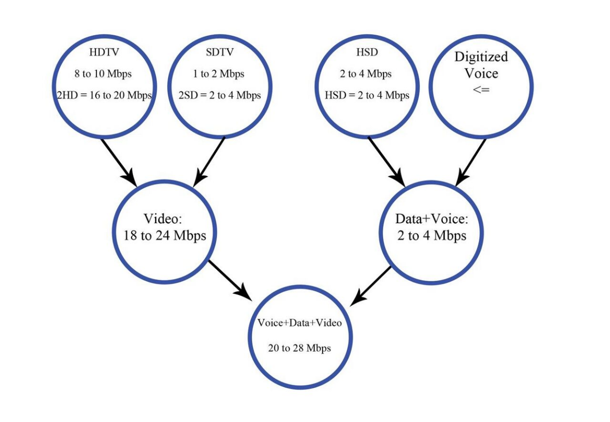 The high-speed data transfer will increase the needed bandwidth for the viewer, at least 2 Mbit/s is needed to use web-based applications on the computer. Additionally to that, 64 kbit/s is required to use landline telephone for the property. In minimal usage, to receive an IPTV triple-play service requires 13 Mbit/s to process in a household.