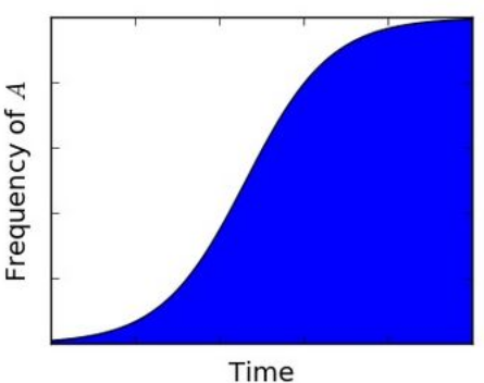where the last approximation holds for [math]\displaystyle{ s\ll 1 }[/math]. In other words, the fitter genotype's frequency grows approximately logistically.