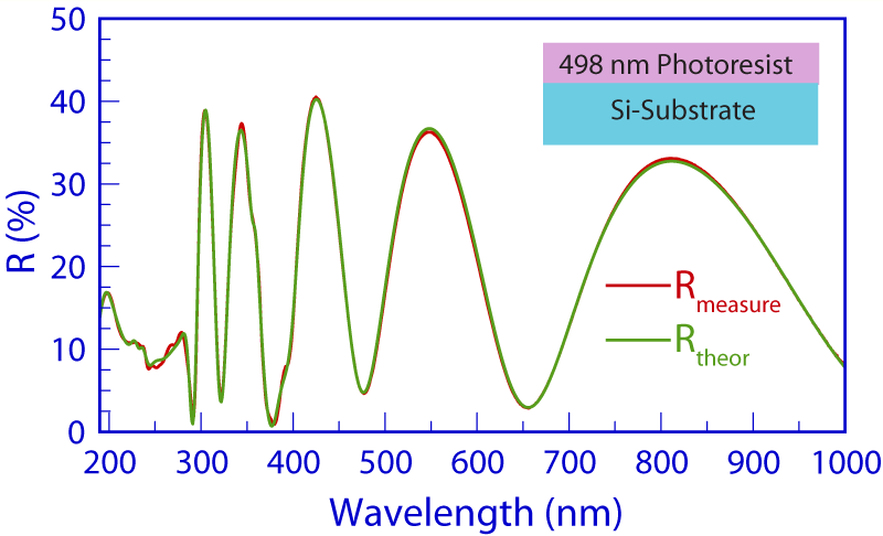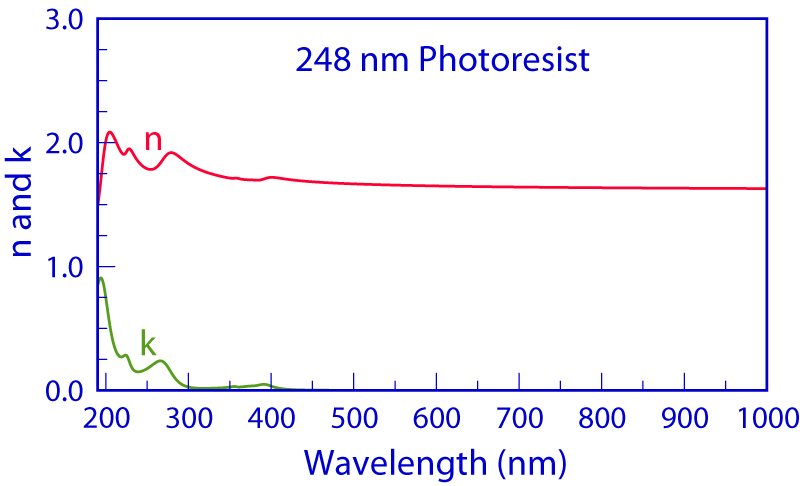 Polymers such as photoresist consist of long chains of molecules which do not form a crystallographic structure in the classic sense. However, their n(λ) and k(λ) spectra exhibit several sharp peaks rather than a broad maximum expected for non-crystalline materials. Thus, the measurement results for a polymer are based on the Forouhi–Bloomer formulation for crystalline materials. Most of the structure in the n(λ) and k(λ) spectra occurs in the deep UV wavelength range and thus to properly characterize a film of this nature, it is necessary that the measured reflectance data in the deep UV range is accurate.