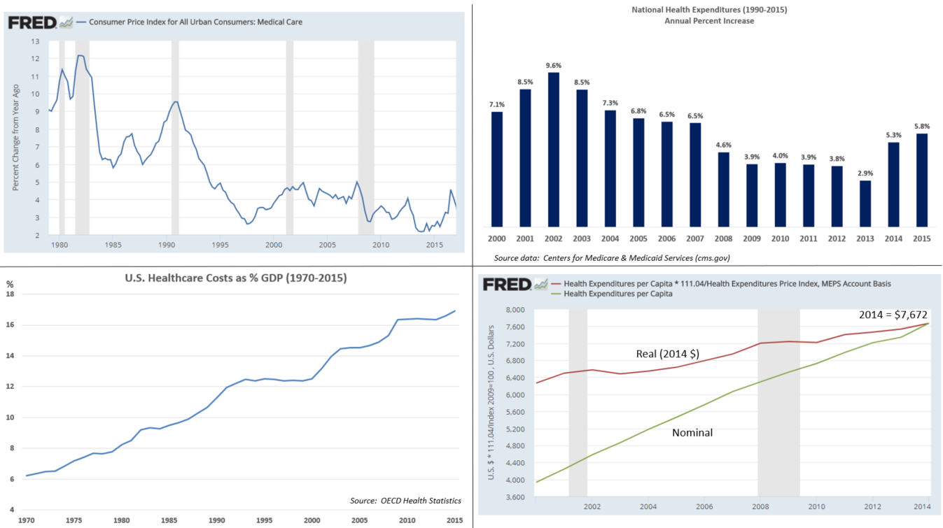 In a 2016 review, Barack Obama claimed that from 2010 through 2014 mean annual growth in real per-enrollee Medicare spending was negative, down from a mean of 4.7% per year from 2000 through 2005 and 2.4% per year from 2006 to 2010; similarly, mean real per-enrollee growth in private insurance spending was 1.1% per year over the period, compared with a mean of 6.5% from 2000 through 2005 and 3.4% from 2005 to 2010.[219]