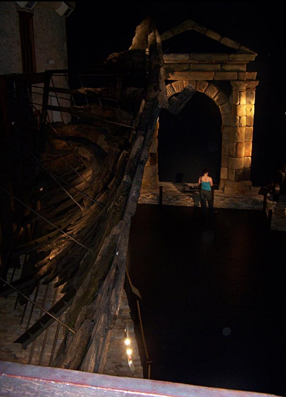 In order to facilitate the monitoring and any future treatment, the hull timbers were erected on a steel frame designed and erected by Geoff Kimpton, a member of Green's staff. The design, and that of a stone arch, or portico, which was also raised from the seabed, is such that individual components can be removed for treatment without affecting those adjacent, or the exhibit as a whole.[23]