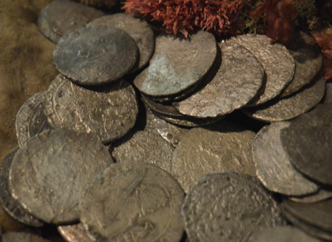 The Batavia carried a considerable amount of treasure. Each ship in the Batavia class carried an estimated 250,000 guilders each in twelve wooden chests containing about 8000 silver coins each.[25] This money was intended for the purchase of spice and other commodities in Java. The bulk of these coins were silver rijksdaalder issues produced by the individual Dutch states, with the remainder being mostly made up of similar coins produced by German cities such as Hamburg. Each of these silver coins was equal to 2.5 guilders, hence approximately 12 x 8000 = 96000 coins. Displays of the largely heavily corroded coins are on show at the Fremantle Western Australia Shipwrecks Museum, and at the Museum of Geraldton (Western Australia Museum), along with other artifacts from the wreck. These coins are derived from the two chests Pelsaert failed to salvage. Coins continue to be recovered by divers.