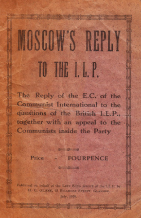 The conservative leadership of the ILP, notably Ramsay MacDonald and Philip Snowden, strongly opposed affiliation to the new Comintern. In opposition to them the radical wing of the ILP organised itself as a formal faction called the Left Wing Group of the ILP in an effort to move the ILP into the Communist International. The faction began to produce its own bi-weekly newspaper called The International, a four-page broadsheet published in Glasgow, and sent greetings to the conference which established a Communist Party of Great Britain, although they did not attend.[20]