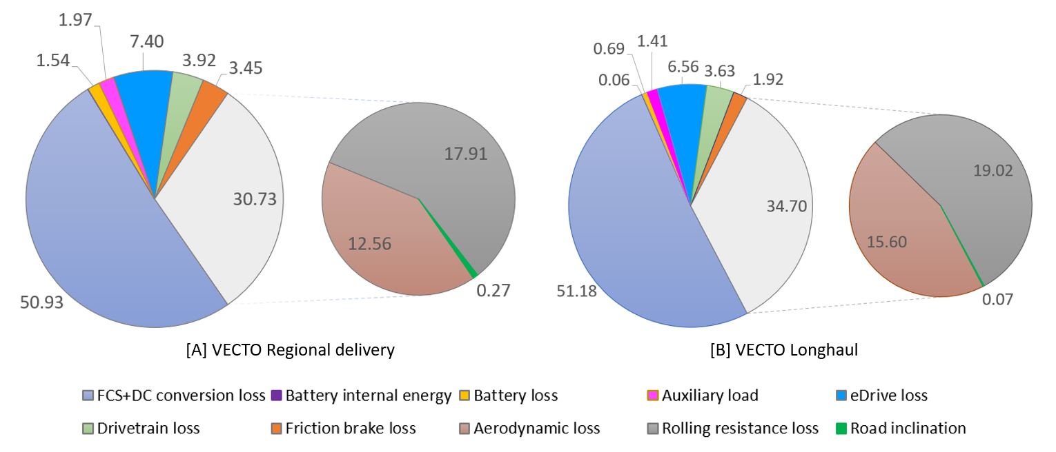 2 FCEVs offer a good alternative over battery electric vehicles (BEVs) for long-haul propulsion with fast refuelling, lower infrastructure requirement, reduced powertrain weight facilitating increased payload capacity, corresponding economic benefits and practicability while still achieving zero tailpipe emissions and could thus prove as a more favourable pathway to decarbonisation and electrification of the HD transport sector even with lower overall tank-to-wheel (TTW) conversion efficiencies