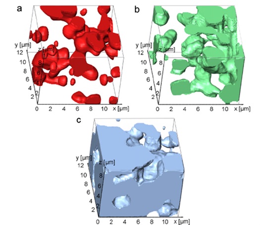 The first significant application of the FIB-SEM tomography was the reconstruction of a Ni-Y-stabilized zirconia (Ni-YSZ) composite anode for solid oxide fuel cells (SOFC), as shown in
