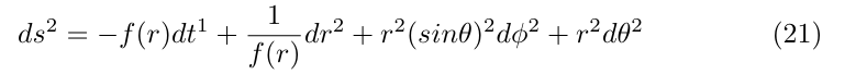 In [20], the spherically-symmetric non-rotating blackhole spacetime metric is chosen in an arbitrary number of dimensions as