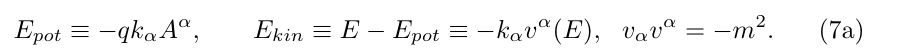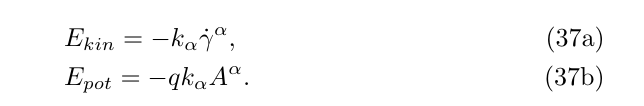 For a worldline γ, the particle 4-position γα and the particle 4-velocity (rvelocity) ˙ γα are looked for. For these purposes, the total energy E is calculated, as well as the kinetic energy Ekin and the potential energy Epot: this way, the configuration of a particle is