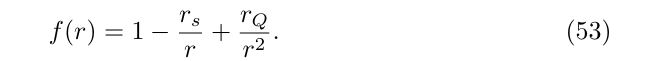 In the present Section, a vanishing electric charge is assumed at the moment. The gtt component of the line element Eq. (20) is therefore reconducted to the following expression