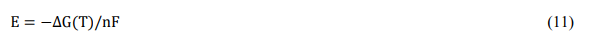 where T is the cell operating temperature, 'n' is the number of moles of electrons released