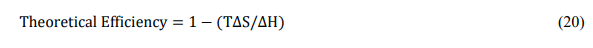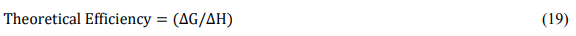 ) of the carbon oxidation reaction (equation 16). The thermodynamic efficiency is basically the fraction of the total chemical energy stored in the carbon fuel that can be effectively converted into electrical work. It can be written as,