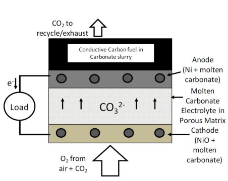 The key aspect of MCFCs is that they essentially operate by the transfer of O2- ions as charge carriers, in the form of carbonates. Therefore, like SOFCS, MCFCs also have the fuel flexibility for being able to utilize any type of combustible fuel and, in principle, can also operate on solid carbonaceous fuels like coal and biomass.