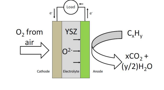 Figure 1. Operating schematic of a solid oxide fuel cell.