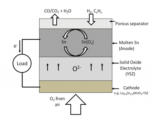 Figure 9. Operating schematic of CellTech Power's molten Sn anode-SOFC.