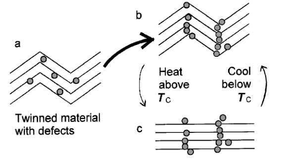 Figure 3. Schematic illustration of atomic-scale mechanism of twin memory in anorthoclase (after [34]).