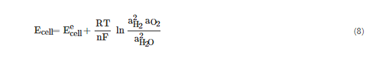 When operating at non-standard conditions, the cell potential must be calculated from the Nernst equation, Equation (8) for the two electrode reactions,