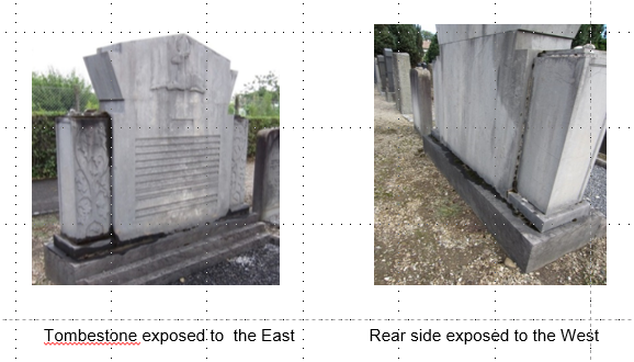 Fig 2 A tombestone showed mosses with different contamination leve.