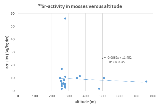 Fig 4 No Correlation between 90Sr-activity in moss and the altitude of the find spots.