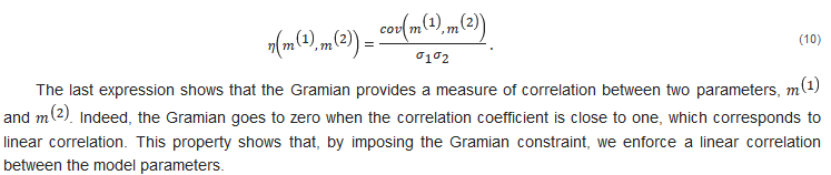 Gramian constraints enforce the correlation between different parameters or their transforms [6][7]. They are implemented by using a Gramian mathematical operator in regularized inversion, which results in producing multimodal inverse solutions with enhanced correlations between the different model parameters or their attributes.