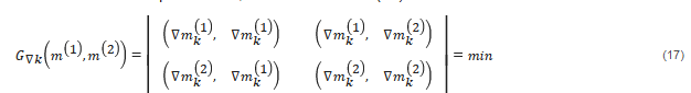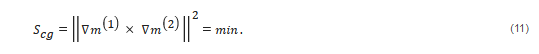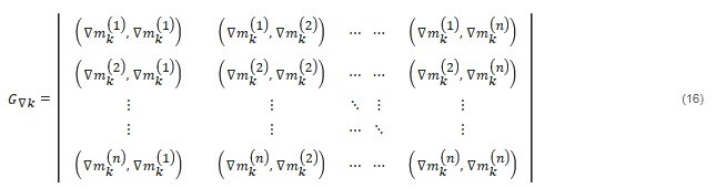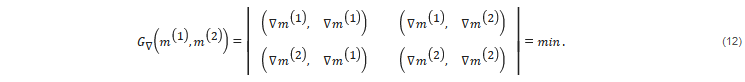 In the framework of the Gramian approach, the same requirement for the gradients of the model parameters being parallel is achieved by minimizing the structural Gramian functional, G ∇ , which, in a case of two physical properties, can be written using matrix notations, as follows: