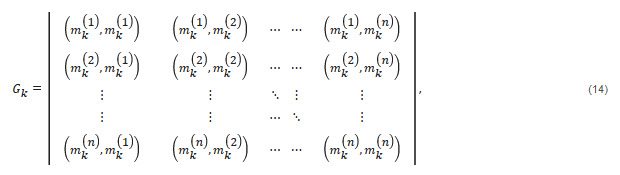 In a general case of n model parameters, the Gramian is computed as the determinant of the Gram matrix as follows:
