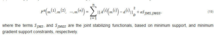 Joint inversion of multiphysics data can be reduced to minimization of the following parametric functional,