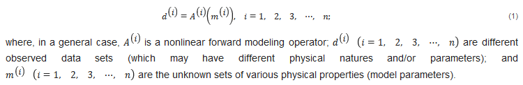 Let us consider forward geophysical problems for multiple geophysical data sets. These problems can be described by the following operator relationships: