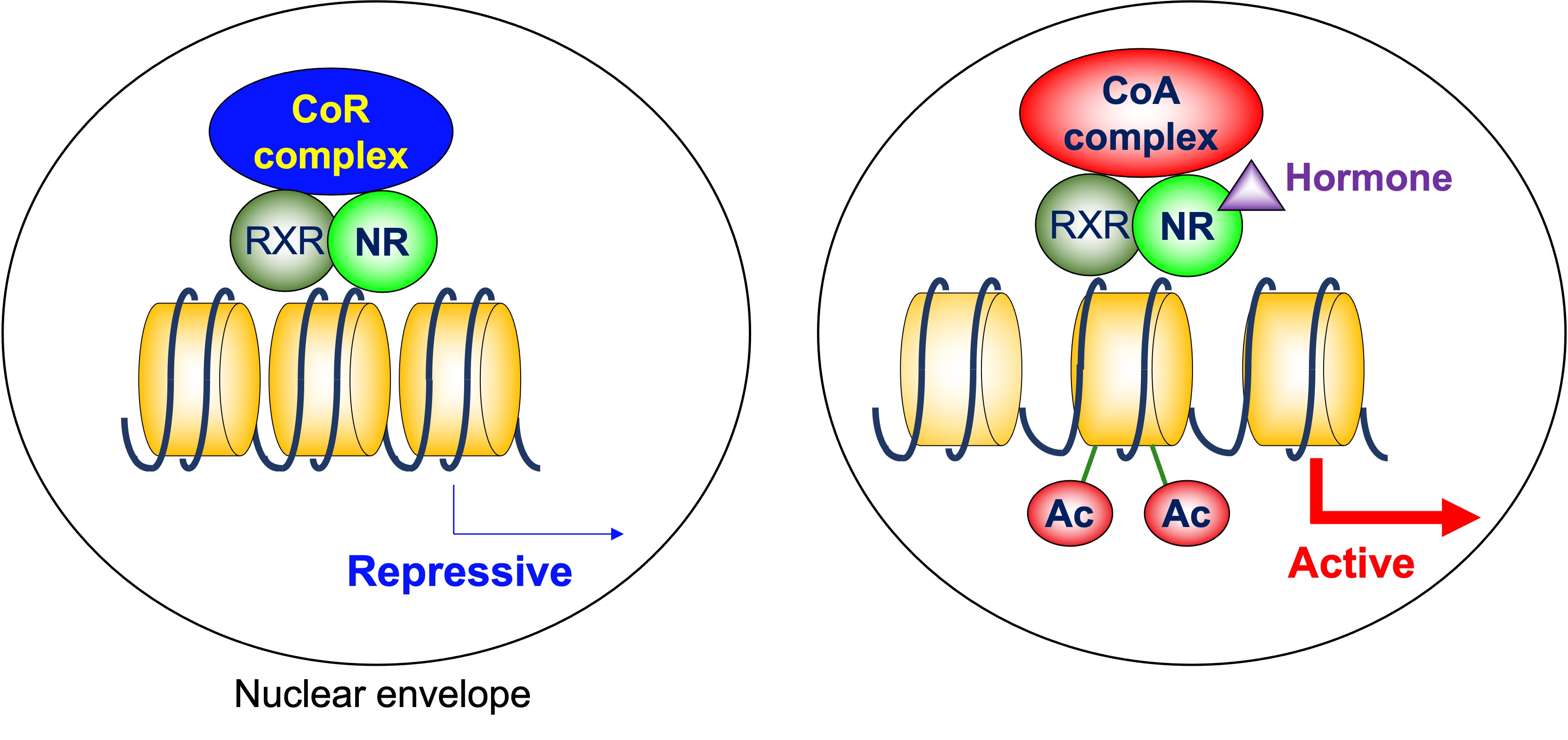 In addition to these NRs, there are multiple orphan NRs whose ligands are yet to be identified. Whereas some of them activate transcription of the target genes in cooperation with coactivators, others serve as transcriptional repressors by interacting with corepressors.