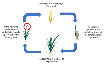 Figure 3. Schematic diagram of the asexual Epichloë endophytic life cycle in cool-season grasses of the Pooideae.