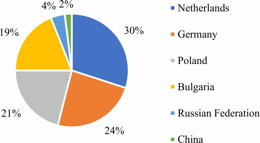 Information about the main suppliers of cadmium to the EU and their percentage is shown in Figure 3. It shows that the main supplier of cadmium is the Netherlands; in turn, China supplies the least.