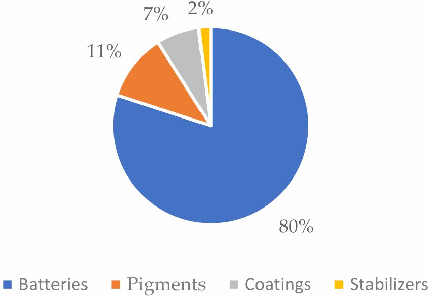 Figure 4. End-use of cadmium in the EU in the period 2012–2016. Adapted from [5].