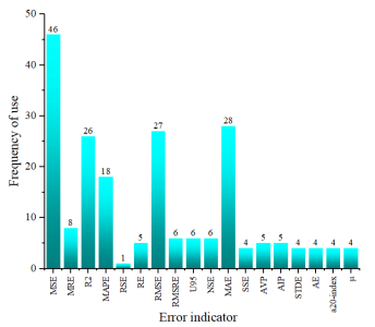 Figure 6. The frequency of using various error indicators in 71 models.