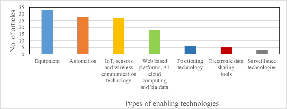 Figure 1. Enabling technologies applied in intermodal freight transport discussed with the articles.