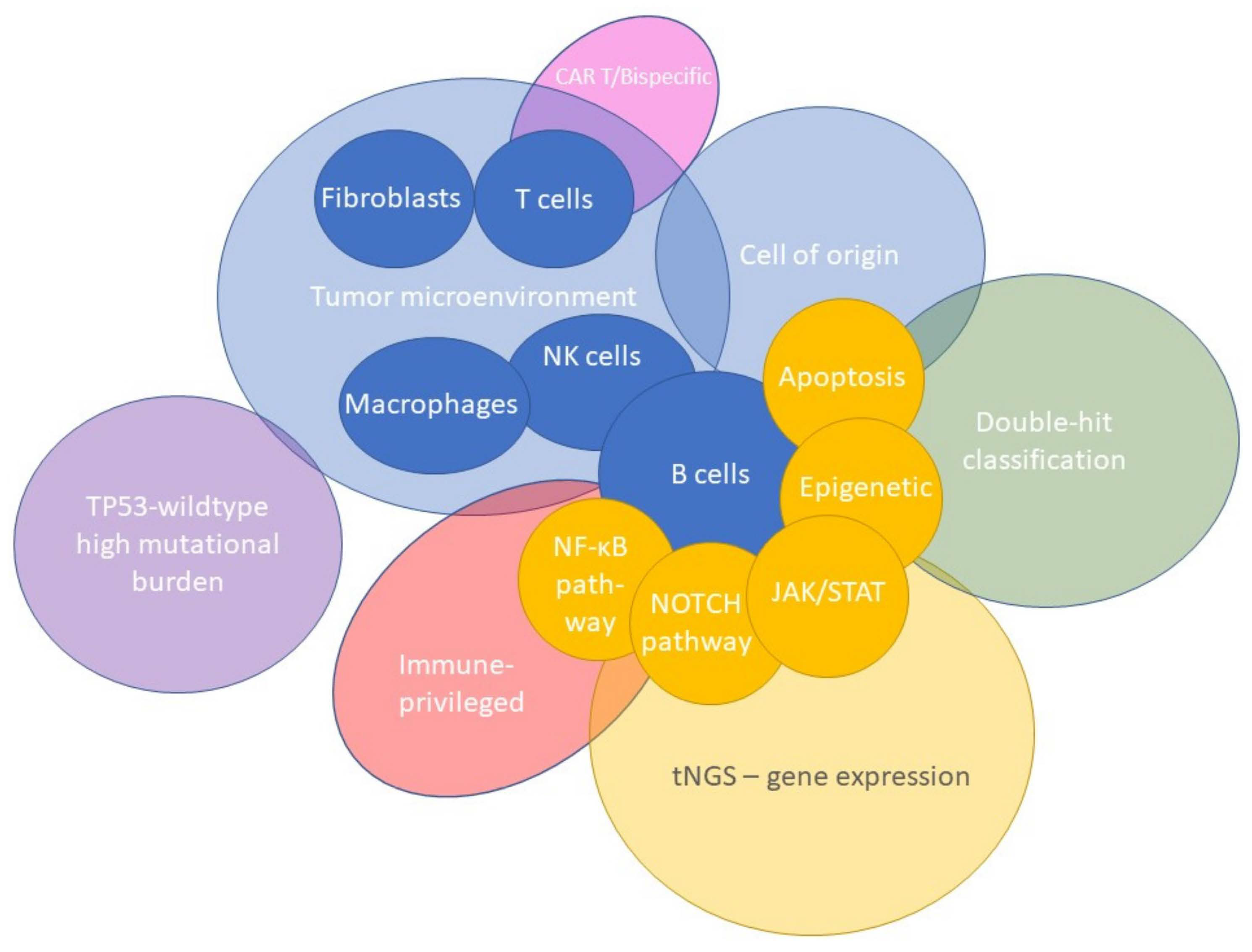 Kahle et al. [60] published a review on the contribution of molecular imaging to the understanding of the biology of lymphoma. Adding immunohistochemistry, proteomics, or imaging mass spectrometry to NGS and GEP data enables a multi-dimensional analysis of tumors related to the TME. For example, de Miranda et al. [61–63] performed imaging mass cytometry on tonsil and colorectal cancer tissues, thereby enhancing the understanding of the heterogeneous and intricate tumor-specific immune landscape of TME. Such molecular imaging analysis can complement current molecular evaluations in DLBCL to a more three-dimensional analysis, facilitating the identification of new mechanistic concepts. In addition, analysis of paired samples before and after an intervention will deepen the analysis of the TME, subclones and (acquired) therapeutic resistance [64]. The application of machine learning tools such as artificial intelligence will further enhance the utility of multi-omics data to better define distinct molecular and prognostic DLBCL subtypes [65].