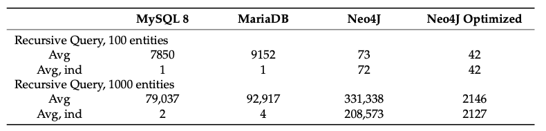 18]. The study showed that Postgres had better results, when only a few steps of recursion were needed. However, MariaDB was a better choice for longer-executing recursive queries on huge amounts of data.