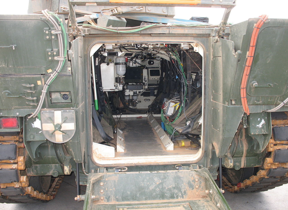 All in all, the Puma has an additional five external cameras at its rear in swing-mounts for protection while not in use. Apart from the glass optic periscope view directly accessible only by the commander and gunner (but indirectly via the CCD camera), all optronic picture feeds can be displayed on every electronic display within the vehicle. The provisions for the rear cabin enable the passengers to be more active than previously in assisting the vehicle crew either directly through the vision blocks and hatches, or by observing one or more optronic feeds. The whole crew has access to the onboard intercom.