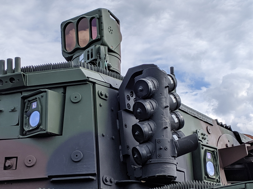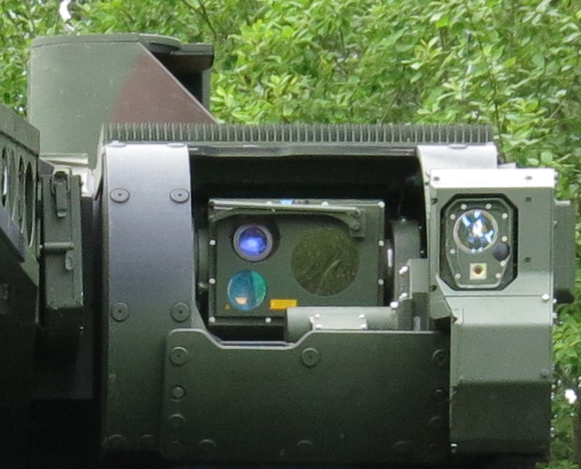 The gunner optics, which can be completely protected with a slide hatch, are mounted coaxially to the main gun. The gunner has a thermal vision camera and laser range finder (identical to those on the PERI) and an optronic day sight, rounded off with a vision- and a glass block. The driver has three of them, as well as an image intensifier and one display for optronic image feeds. Even the passenger cabin has a hatch and three vision blocks on the rear right side of the vehicle, one of them in a rotary mount. The rear cabin also has two electronic displays.