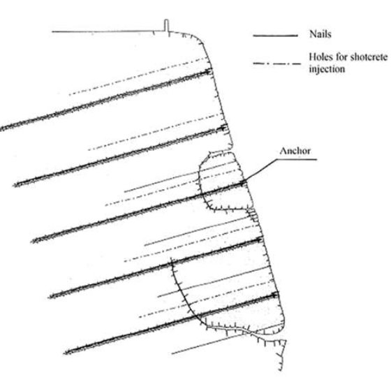 The soil nailing technique applied to temporarily and/or permanently stabilise natural slopes and artificial scarpsis based on a fundamental principle in construction engineering: mobilizing the intrinsic mechanical characteristics of the ground, such as cohesion and the angle of internal friction, so that the ground actively collaborates with the stabilisation work. Nailing, on a par with anchors, induces normal stress, thereby increasing friction and stability within the hillside.