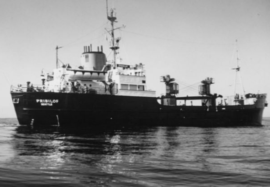 Pribilof remained active under the NMFS. For example, in 1973 – at which time she had a crew of 19 – she made five voyages between Seattle and the Pribilof Islands, delivering provisions to the inhabitants of the islands and returning to Seattle with sealskins, blubber, frozen seal meat for use as food on mink farms, and heavy equipment in need of repair.[1] By this time, however, weekly commercial flights from Anchorage also were transporting mail, medicine, and perishable goods to and from St. Paul Island.[1]