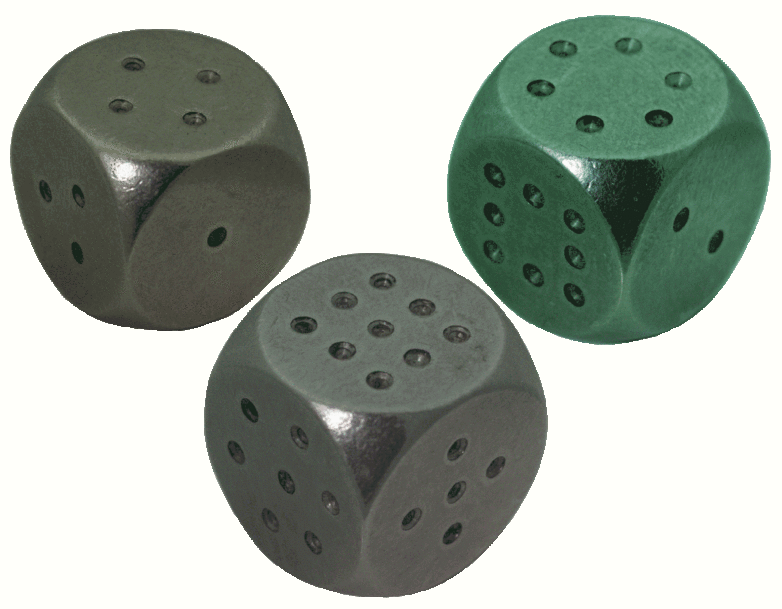 win against each other with equal probability they are not equivalent. While the first set of dice (A, B, C) has a 'highest' die, the second set of dice has a 'lowest' die. Rolling the three dice of a set and using always the highest score for evaluation will show a different winning pattern for the two sets of dice. With the first set of dice, die B will win with the highest probability (88/216) and dice A and C will each win with a probability of 64/216. With the second set of dice, die C′ will win with the lowest probability (56/216) and dice A′ and B′ will each win with a probability of 80/216.