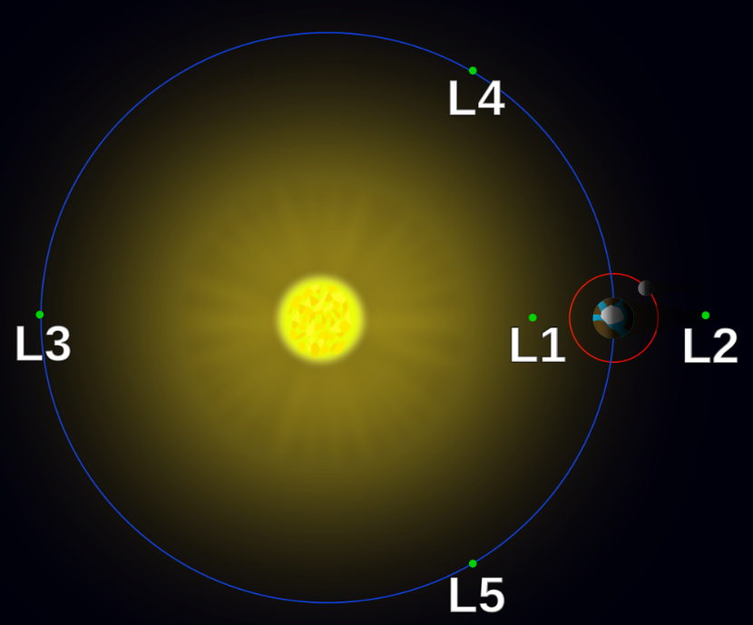 This mission concept proposes positioning two spacecraft in orbit at the L1 and L5 Lagrangian points, respectively, where gravitational forces interact to create a stable location to save propellant and from which to make observations. L1 is in the solar wind 'upstream' from Earth, so measurements at L1 provide information about the space weather coming toward Earth. In contrast, the L5 point provides a way to monitor coronal mass ejections (CMEs) from the 'side' in order to estimate their speed and direction.[3]