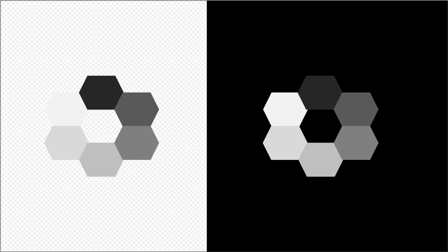 According to the Whittle calculation, darker grays are achievable with a more-luminous background.[52] The effect is more pronounced for larger subtenses, but can be seen in the lower left of Figure 7 where more-negative nEPD is achieved when the background luminance is greater. Figure 9 exemplifies the effect; the same hexagonal visual target is seen as a darker gray (including black) when its background is more luminous, according to the Whittle calculation.