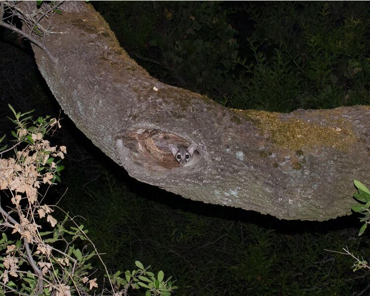 Ringtails are primarily nocturnal, with large eyes and upright ears that make it easier for them to navigate and forage in the dark. An adept climber, it uses its long tail for balance. The rings on its tail can also act as a distraction for predators. The white rings act as a target, so when the tail rather than the body is caught, the ringtail has a greater chance of escaping.[6]