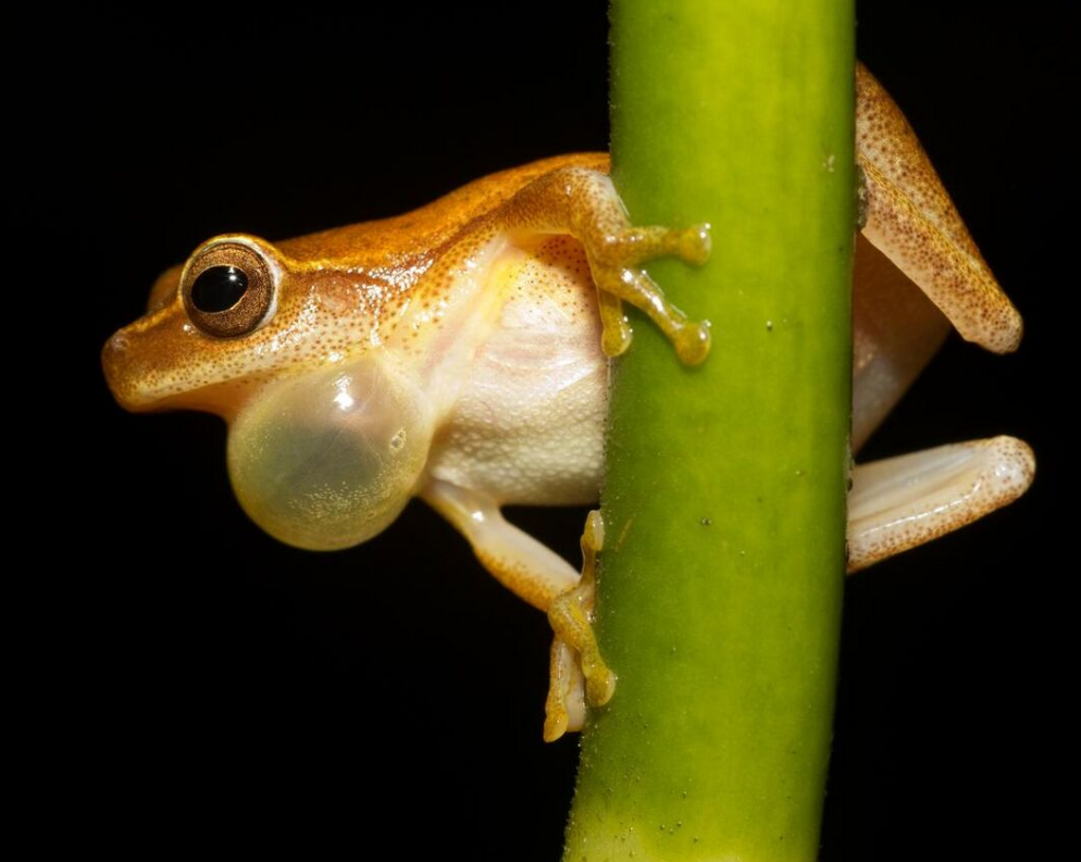The main function of calling is for male frogs to attract mates. Males may call individually or there may be a chorus of sound where numerous males have converged on breeding sites. In many frog species, such as the common tree frog (Polypedates leucomystax), females reply to males' calls, which acts to reinforce reproductive activity in a breeding colony.[86] Female frogs prefer males that produce sounds of greater intensity and lower frequency, attributes that stand out in a crowd. The rationale for this is thought to be that by demonstrating his prowess, the male shows his fitness to produce superior offspring.[87]