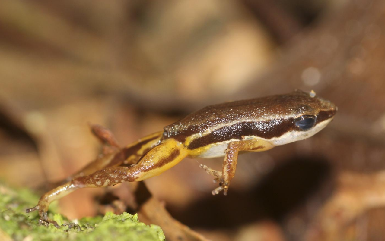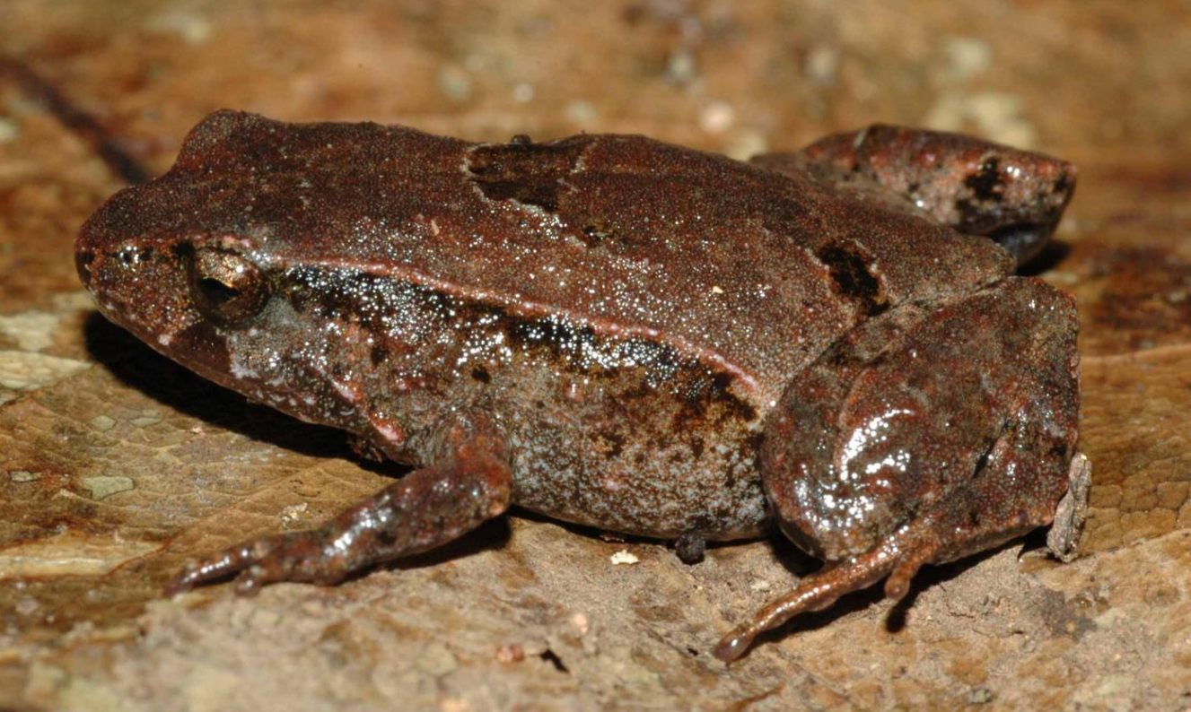Pouched frog (Assa darlingtoni) camouflaged against leaf litter. https://handwiki.org/wiki/index.php?curid=1360125